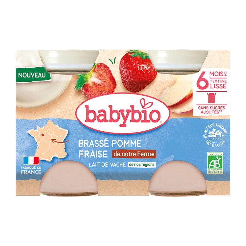 Babybio Brassé Pomme Fraise Lait de Vache 6 Mois et + Bio 2 Pots de 130 g est un délice pour les tout-petits.