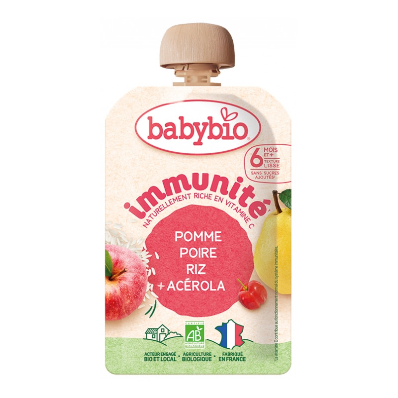 Babybio Immunité Pomme Poire Riz Acérola 6 Mois et + Bio 100 g est une véritable source de vitalité.