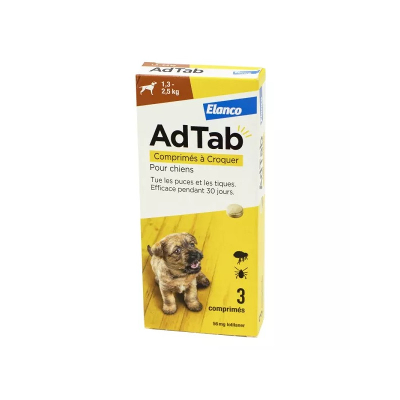 ADTAB 56mg de Lotilaner Antiparasitaire Interne Chien de 1.3 à 2.5kg - 3 Comprimés à Croquer
