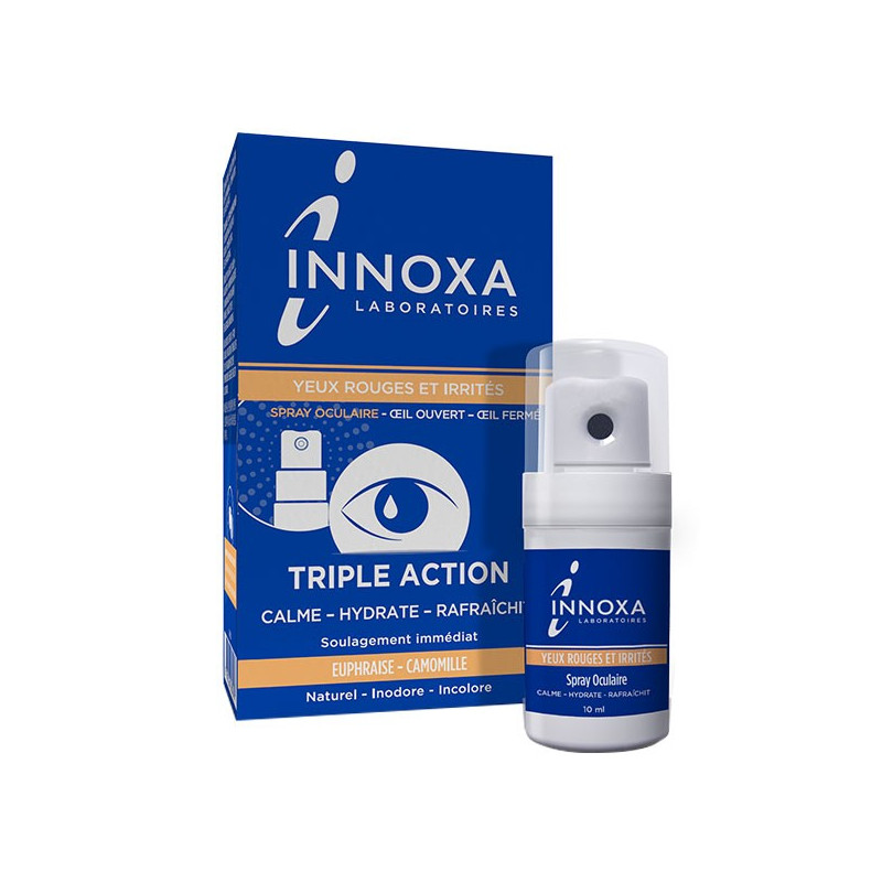 Innoxa Spray Oculaire Yeux Rouges et Irrités 10ml apaise, hydrate et rafraîchit les yeux rouges et irrités.