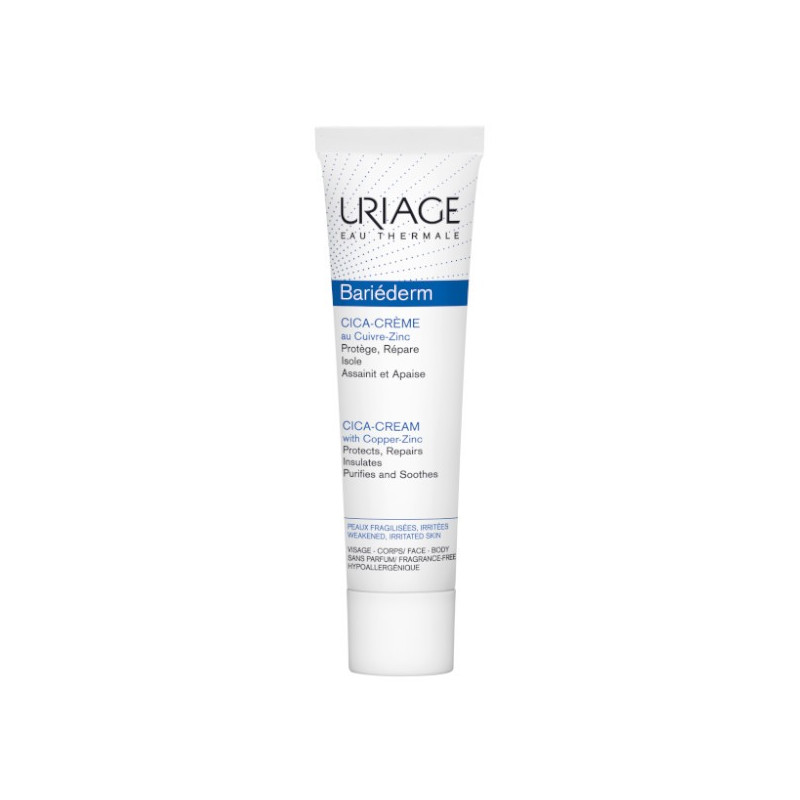 La crème Cica réparatrice Bariéderm d'URIAGE s'applique sur le visage et le corps.
