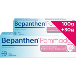 Lot de 2 tubes de bepanthen pommade 100gh + 30g indiqué dans le traitement de l'irritation de la peau