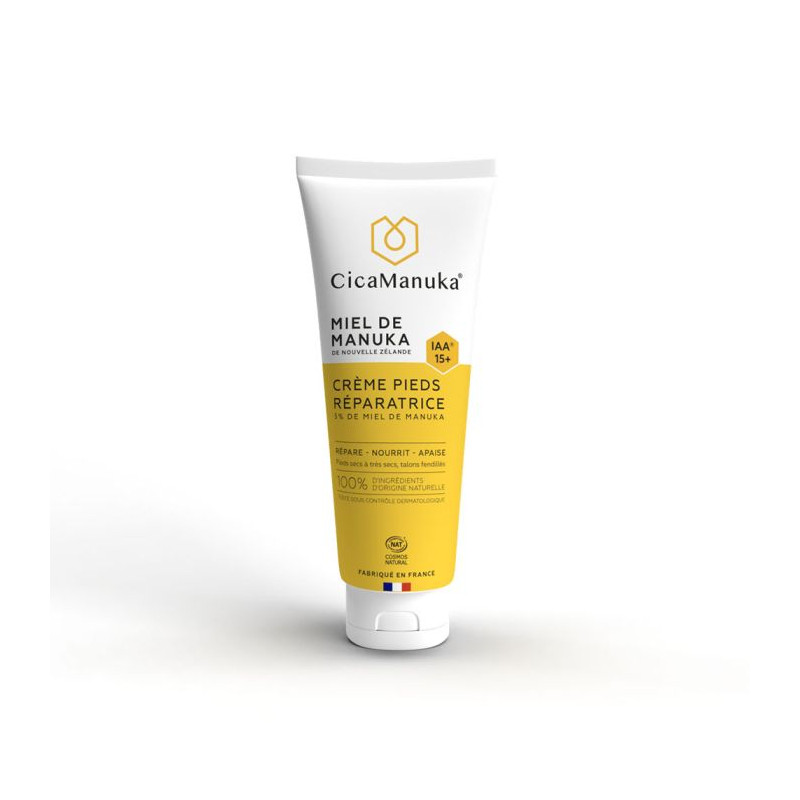 Formulé à base d’ingrédients 100% d’origine naturelle, enrichi au miel de Manuka IAA15+, de beurre de karité bio et d’aloe vera, ce soin quotidien nourrit, hydrate* et soulage les pieds secs à très secs pour une sensation de confort immédiat. Il réduit les callosités, apaise les talons abîmés et tiraillés et aide à prévenir des crevasses.