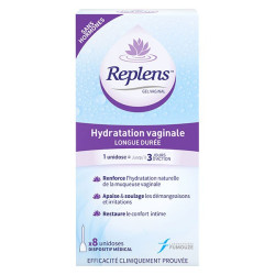 Replens Gel Vaginal 8 Doses est destiné aux femmes présentant une sécheresse vaginale, une atrophie vaginale, des démangeaisons ou des irritations et une sensation d'inconfort.