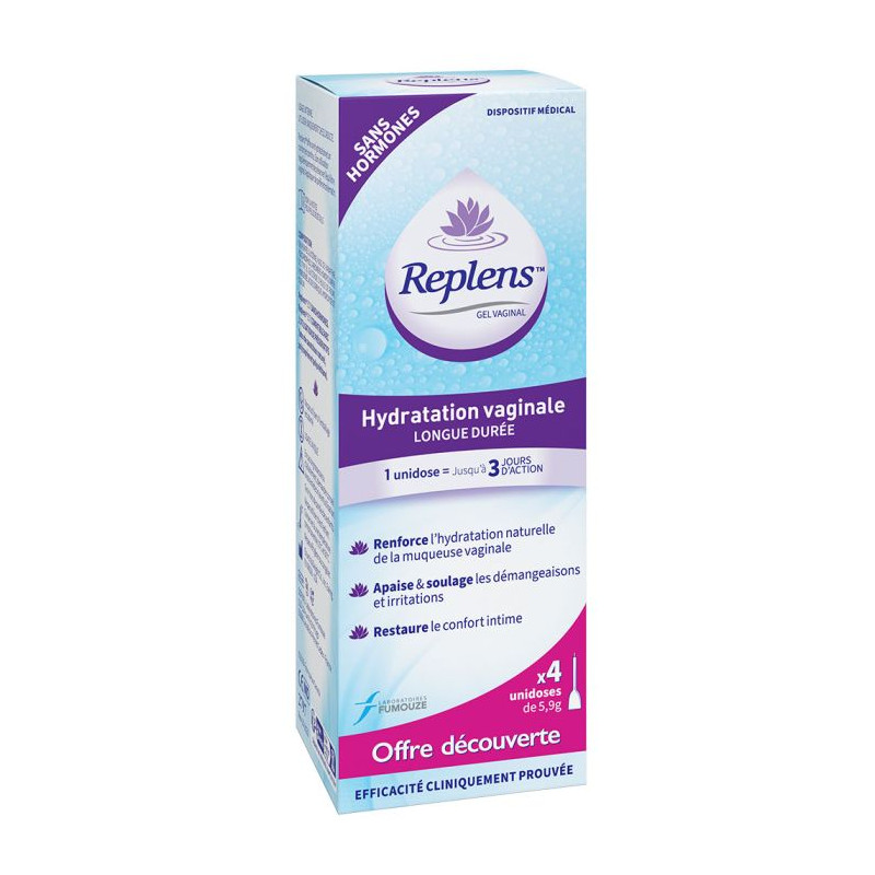 Replens® est le seul gel vaginal non-hormonal à action hydratante et lubrifiante longue durée de 3 jours.