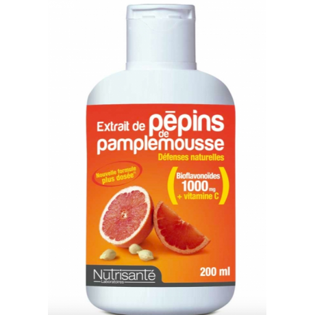 Nutrisanté Extrait de Pépins de Pamplemousse 200 ml est un complément alimentaire à base d'extrait de pépins de pamplemousse qui va permettre de renforcer les défenses naturelles de l'organisme.
