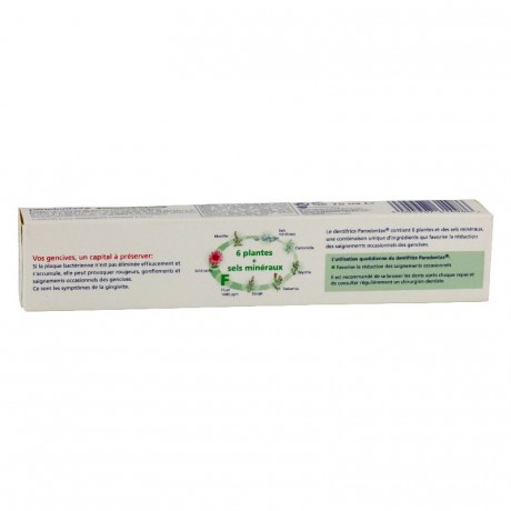 Des extraits de plantes (Echinacée. Myrrhe. Sauge. Ratanhia) permettent de tonifier les gencives. de lutter contre la plaque bactérienne et favorisent la réduction des saignements (action hémostatique) des gencives.