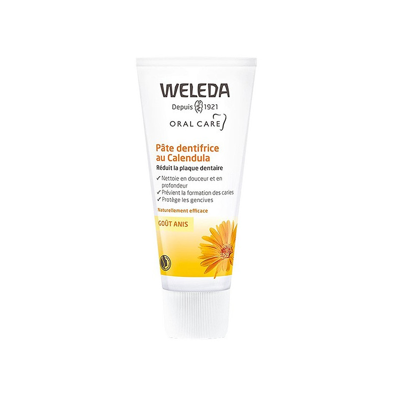 Grâce à une fine poudre abrasive naturelle à base de carbonate de calcium, cette pâte dentifrice au Calendula Weleda nettoie efficacement tout en respectant l'émail des dents. En brossage quotidien, il aide à lutter contre la plaque dentaire responsable de la formation des caries.