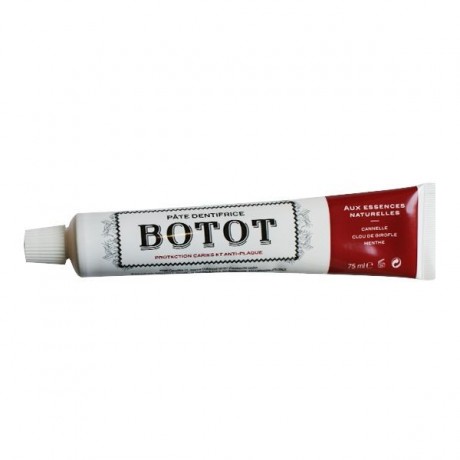 Le Dentifrice Botot aux essences naturelles au fluor et au triclosan est un soin pour l'hygiène buccale, à actions antiplaques, permettant de nettoyer les dents, de combattre les bactéries responsables de la plaque bactérienne tout en reminéralisant l'émail dentaire.