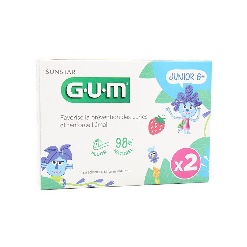 Spécialement conçu pour les enfants âgés de 6 ans et plus, Gum Dentifrice Junior Lot de 2x50ml contribue à protéger les dents et les gencives à un moment crucial de leur développement.