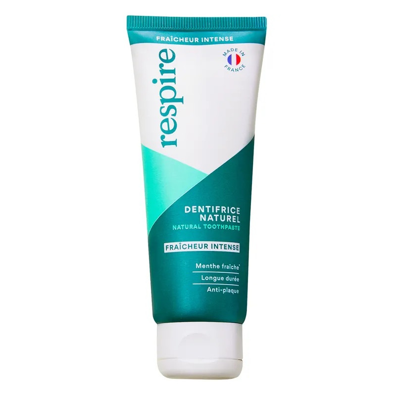 Le dentifrice naturel Fraîcheur Intense Respire arôme Menthe Fraîche est à 98% d’ingrédients d’origine naturelle, vegan et fait en France.