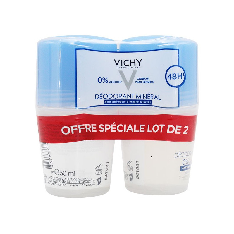 Association du gluconate de zinc et des 15 minéraux de l'eau minéralisante de Vichy pour une efficacité anti-odeur jusqu’à 48h, à la Provitamine B5 apaisante.