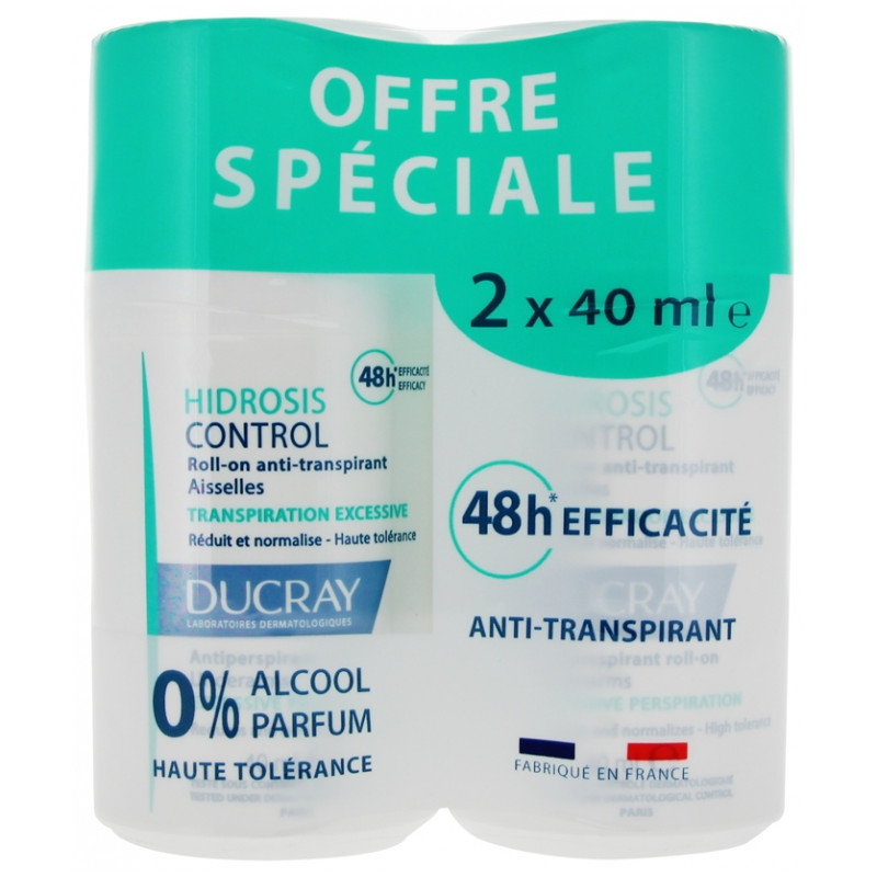 Ducray Hidrosis Control Roll-On Anti-Transpirant Aisselles Lot de 2 x 40 ml est un roll-on qui répond au problème de transpiration excessive des aisselles. Il contrôle rapidement et durablement la sudation excessive (48 heures d'efficacité). Anti-odeurs et anti-traces, il a été élaboré pour minimiser les risques de réactions allergiques. Il offre une haute tolérance.