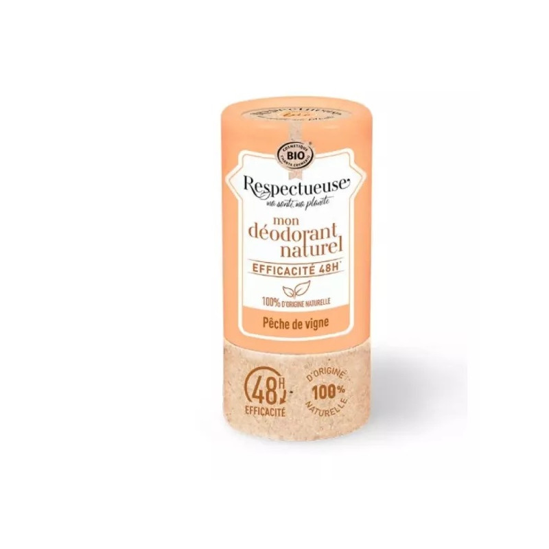 Ce déodorant certifié bio et 100% d’origine naturelle protège des mauvaises odeurs de transpiration pendant 48h grâce à une formule experte associant un trio d’actifs naturels. Enrichi en Calendula, il est idéal pour les peaux délicates et laisse un parfum frais de Pêche de Vigne. Son efficacité a été prouvée en laboratoire. Sans trace, ne tache pas les vêtements.