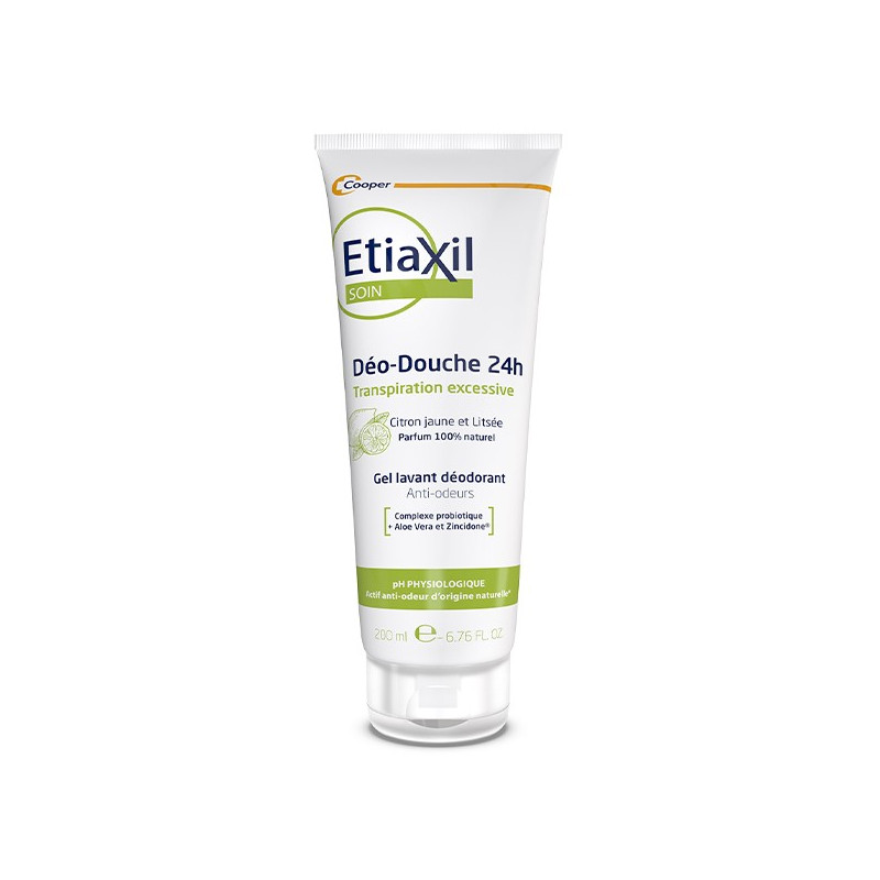 Etiaxil Déo-Douche 24h 200ml est un gel lavant déodorant à utiliser sous la douche pour réguler la transpiration excessive.