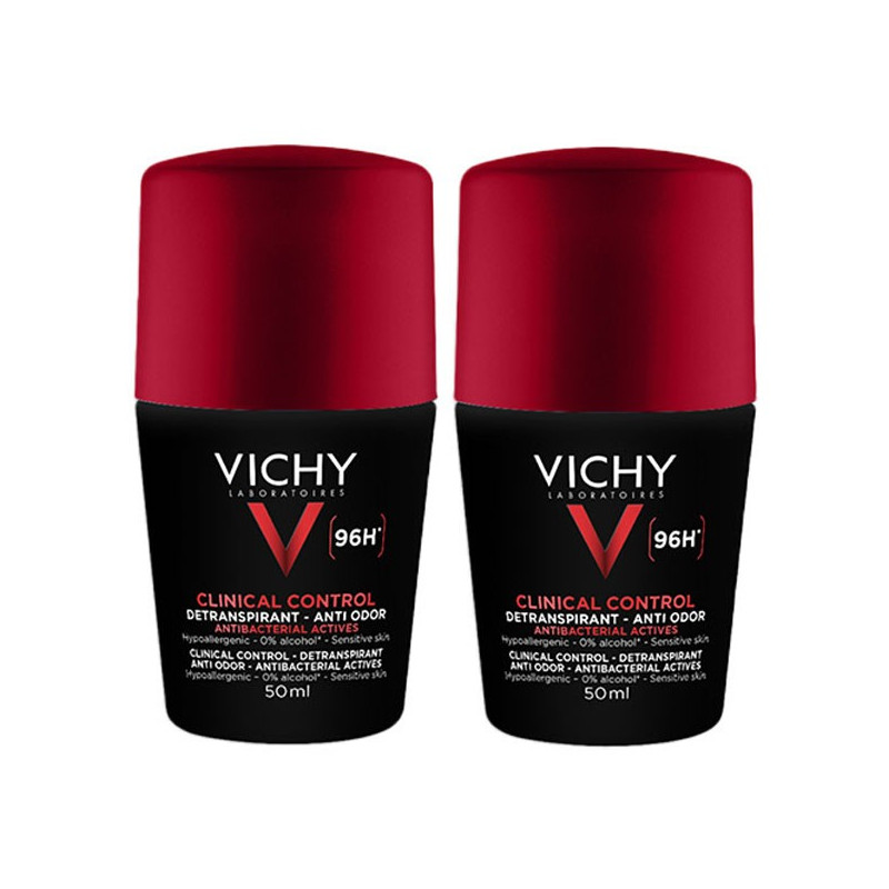 Vichy Homme Déodorant Clinical Control 96h Bille 50ml Lot de 2 x 50ml est riche en Actifs anti-transpirants et en zinc anti-bactériens, ce détranspirant contrôle l'humidité sur la durée et neutralise les bactéries responsables des mauvaises odeurs.