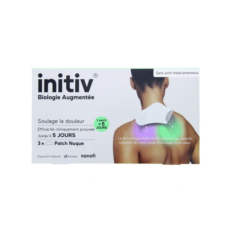 Le patch Initiv® Biologie Augmentée pour la nuque propose une technologie innovante, la technologie ReflecTech®, pour optimiser la capacité naturelle du corps à soulager les douleurs musco-squelettiques (touchant les articulations, les muscles et les tendons) de courte durée (aiguës) de la nuque. Des particules minérales ReflecTech® recouvre le patch Initiv® pour refléter l'énergie infrarouge émise par le corps vers la zone douloureuse afin de soulager la douleur et retrouver un confort et une mobilité.