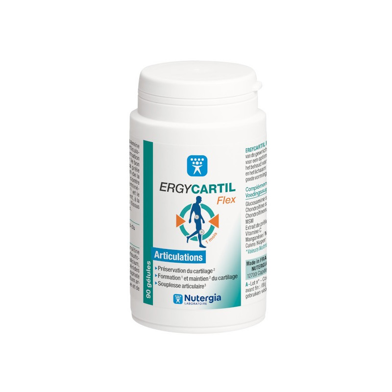 ERGYCARTIL Flex est un complément alimentaire apportant glucosamine et chondroïtine, composants des articulations.