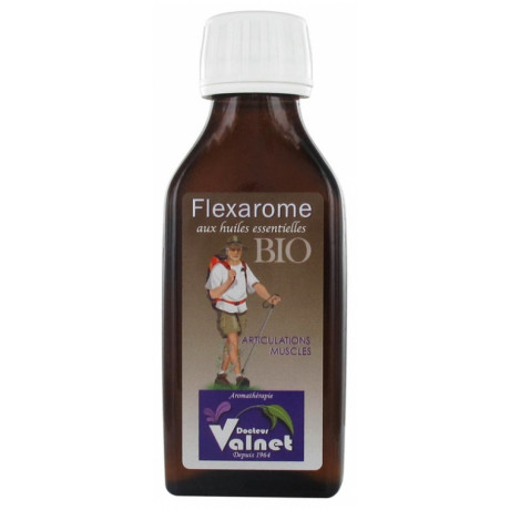 Docteur Valnet Flexarome Articulations Muscles Bio 100 ml aux huiles essentielles bio de térébenthine, origan, baie de genièvre, cyprès, romarin et teinture de gingembre va apaiser les muscles et articulations, procurant un bienfait immédiat.