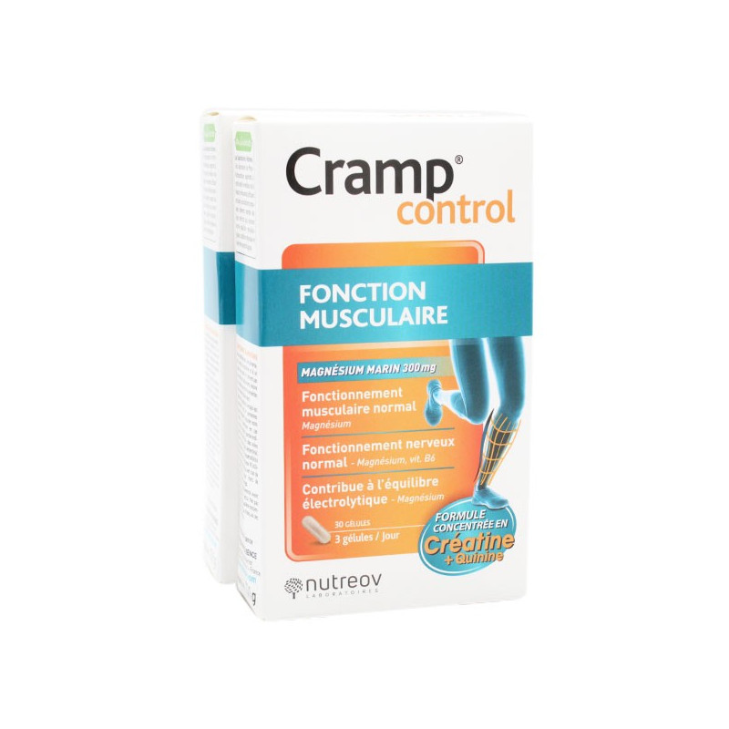 Cramp Control Lot de 2 x 30 gélules de chez Nutreov Physcience est un complément alimentaire formulé à partir d'un complexe exclusif : le complexe ATPquine.