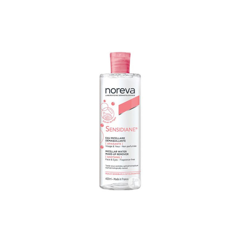 L'Eau micellaire démaquillante apaisante Noreva apaise et enlève même le maquillage waterproof, adaptée aux peaux sensibles à intolérantes. La solution douce et apaisante, destinée à toutes les peaux sensibles, réactives et intolérantes de toute la famille, dès 3 ans. L’Eau Micellaire Sensidiane® permet de nettoyer en douceur le visage et les yeux et d’éliminer le maquillage, même waterproof, grâce aux micelles douces et au complexe exclusif Neutrazen Pro présents dans la formule. La peau est nette, hydratée et apaisée après application.