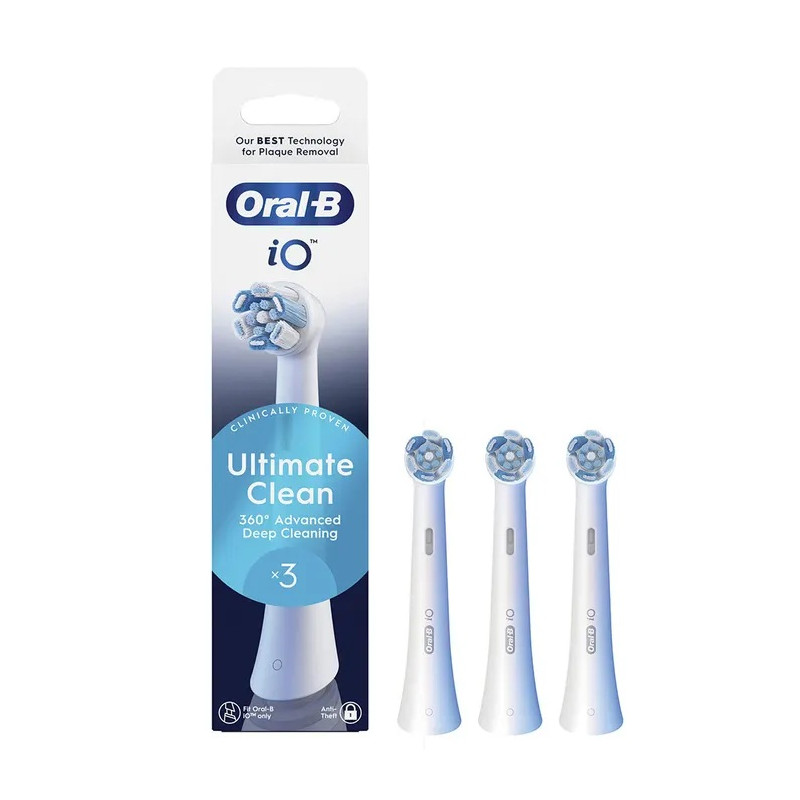 - Conçues exclusivement pour les manches de brosses à dents électriques Oral-B iO, les brossettes Ultimate Clean aident à éliminer jusqu’à 100 % de plaque dentaire en plus qu’une brosse à dents manuelle classique, pour des dents propres et éclatantes.