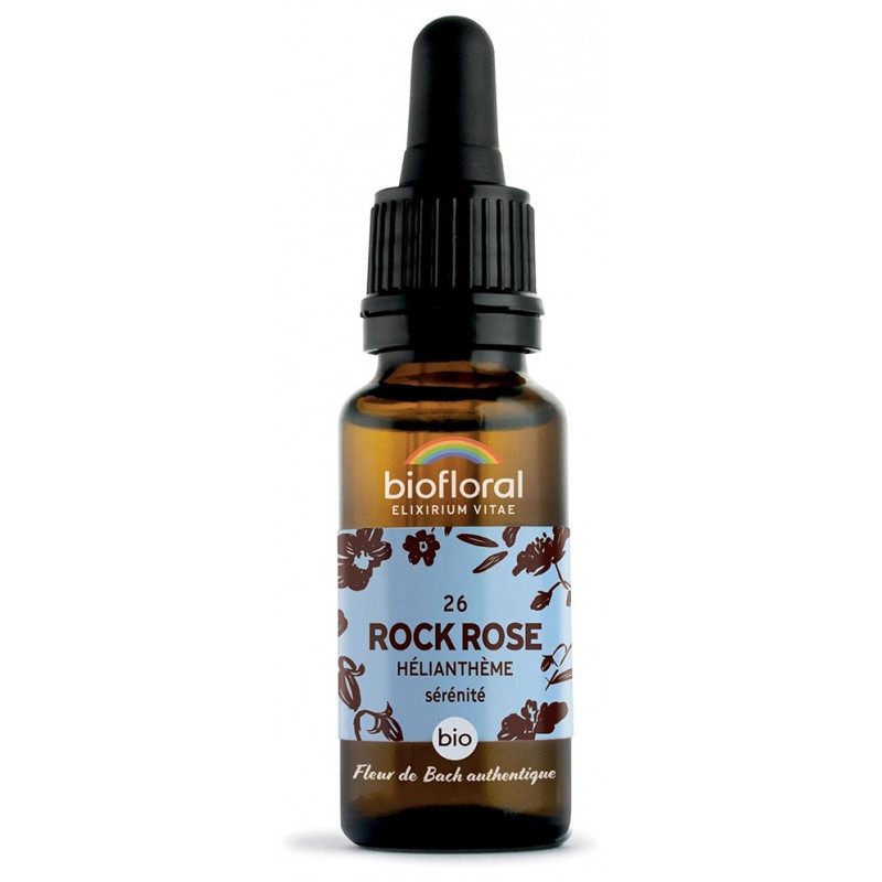 Biofloral Fleurs de Bach 26 Rock Rose Bio 20 ml est un complément alimentaire indiqué dans le sentiment de peur, de panique aigüe, de terreur et de cauchemars. Il apporte force et courage pour les situations de crise.