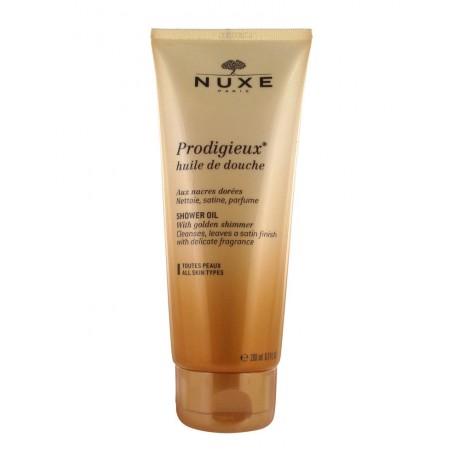 Nuxe Prodigieux Huile de Douche 200 ml avec nacres dorées nettoie la peau en douceur grâce à sa mousse fine et soyeuse. Sa texture précieuse est embellie par le parfum mythique Prodigieux, reconnaissable entre mille.