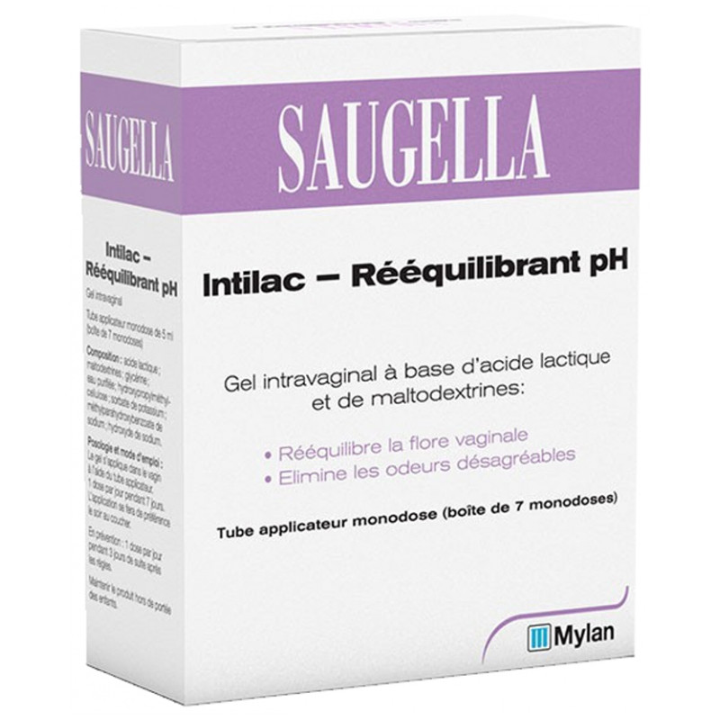 Saugella Intilac Rééquilibrant pH 7 Monodoses de 5 ml est un gel intravaginal à base d'acide lactique et de maltodextrines qui permet de rééquilibrer la flore vaginale et d'éliminer les odeurs désagréables. En effet, la présence d'acide lactique et de maltodextrines va permettre de restaurer et maintenir l'équilibre physiologique de l'écosystème vaginal.