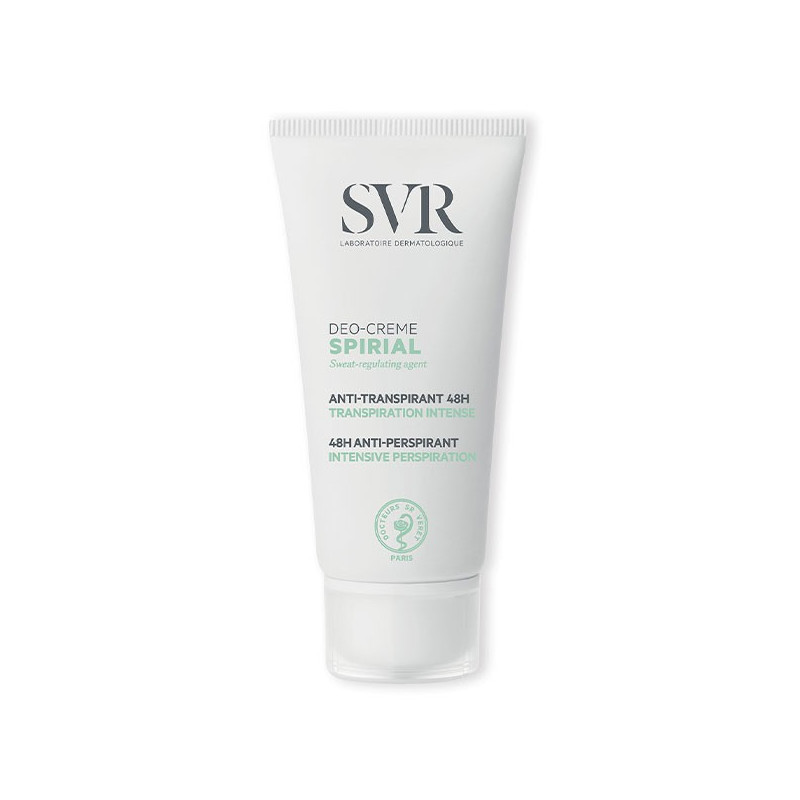 Pour lutter contre la transpiration normale à excessive, le laboratoire SVR vous propose une innovation pour vos aisselles, pieds, mains, plis et visage : Spirial Crème Anti-Transpirante 50ml.