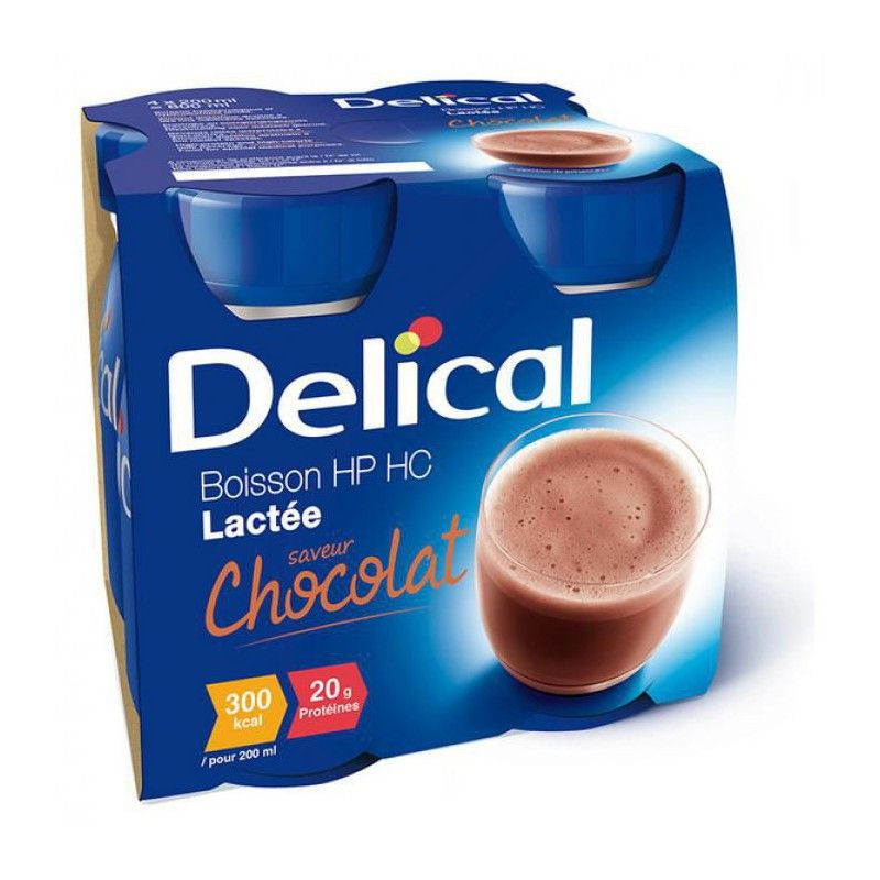 Boisson lactée HP/HC chocolat de Delical est une boisson lactée pour les patients ayant un régime de dénutrition protéino-énergétique et des troubles de l'alimentation.