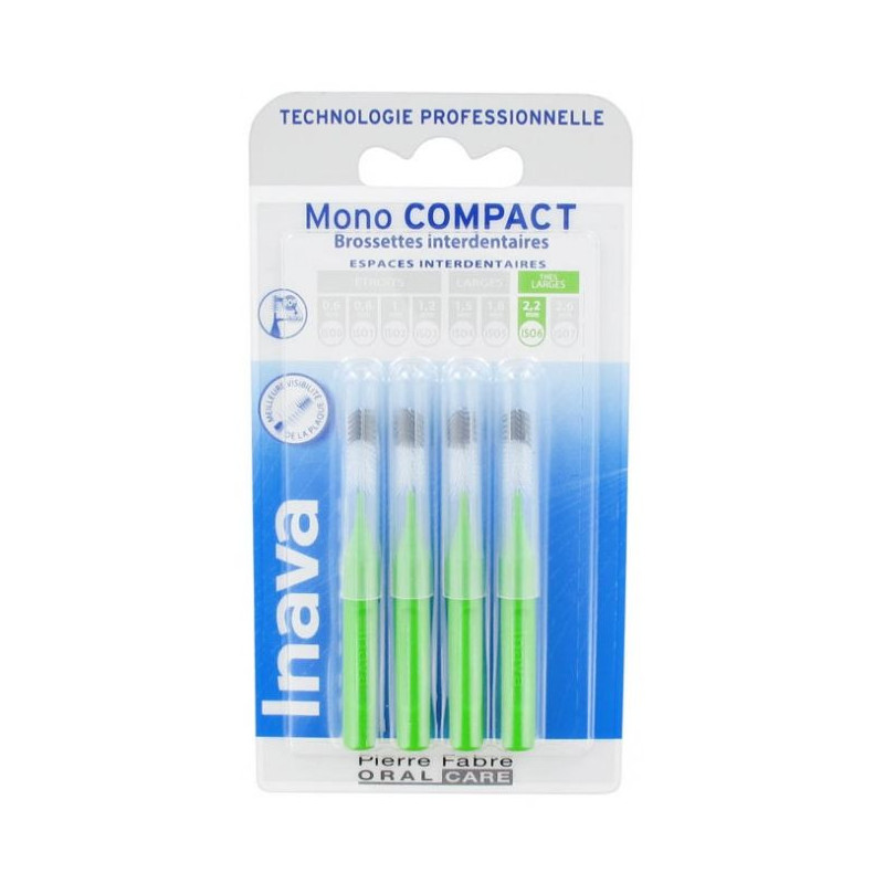 Inava Mono Compact 4 Brossettes Interdentaires - Taille : ISO6 2,2 mm sont conçues pour éliminer efficacement la plaque dentaire déposée entre les dents. Sa tige flexible jusqu'à 90°C et résistante permet un meilleur accès aux zones difficiles et une facilité d'insertion par la face linguale. Les brins sont bicolores (blancs pour révéler les gencives sensibles en cas de saignement, noirs pour une meilleure visibilité lors de l'élimination de la plaque dentaire).