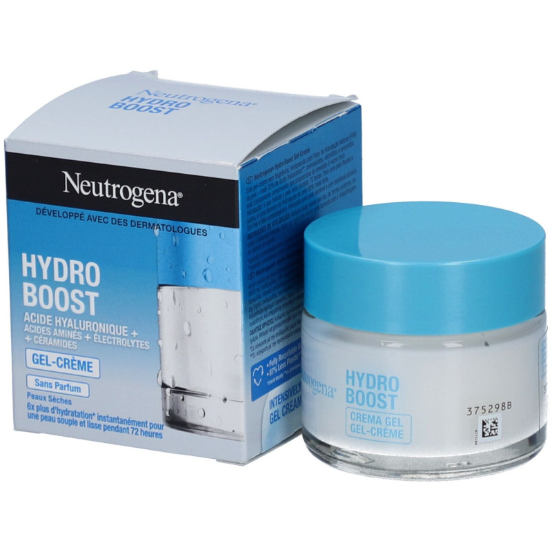 Neutrogena Hydro Boost Gel-Crème 50 ml est un soin visage pour peaux sèches. Les Facteurs Naturels d'Hydratation (FNH) sont un groupe d'ingrédients hydratants présents naturellement dans la peau, qui contribuent au maintien de l'hydratation cutanée. Les taux de FNH diminuent dû aux agressions extérieures. Ce gel-crème, enrichi d'un complexe de FHN, offre plus d'hydratation aux peaux sèches et forme une barrière cutanée pour une peau souple et lisse.