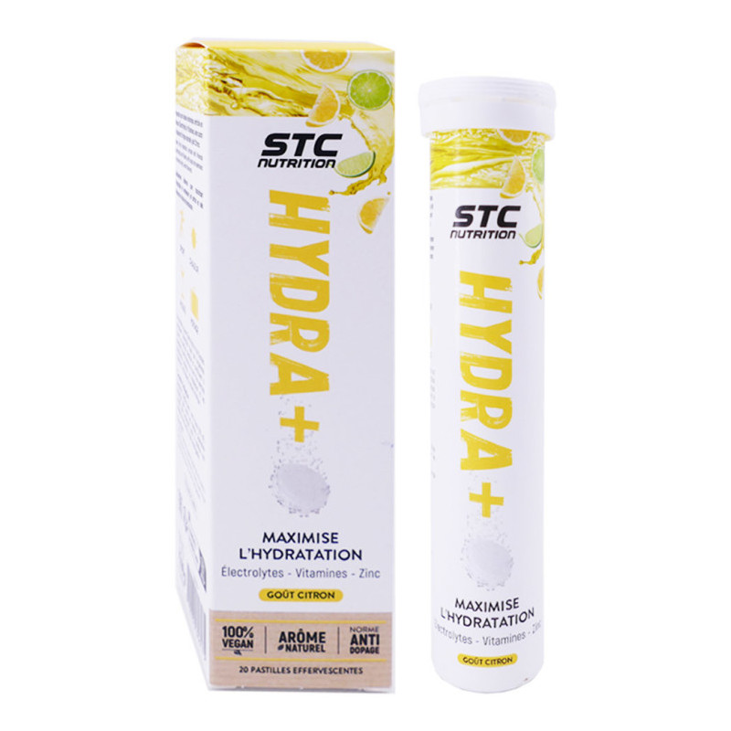 Les pastilles effervescentes HYDRA+ de chez STC Nutrition® vous permettent d’enrichir votre eau en Minéraux (Électrolytes), Zinc et Vitamines, avec un délicieux arôme naturel Fruits Rouges ou Citron.