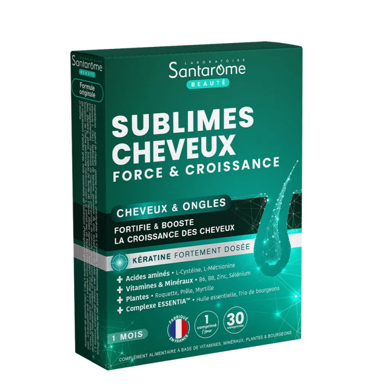 - La Vitamine B8 (biotine), le zinc et le sélénium qui contribuent au maintien de cheveux normaux.