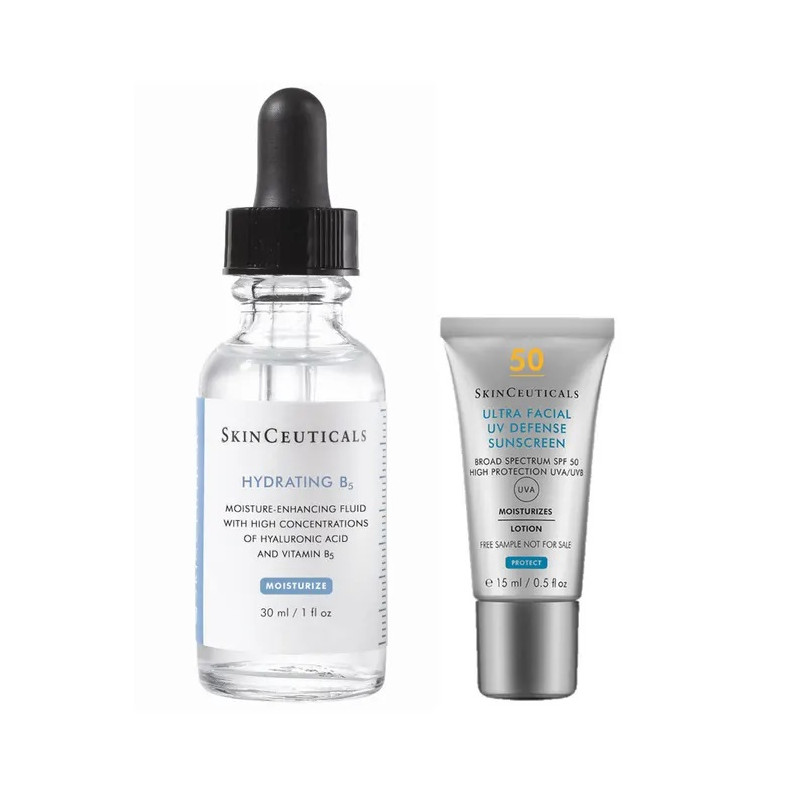 HYDRATING B5: matin et soir, appliquer 3 à 4 gouttes sur le visage, le cou et le décolleté en évitant le contour des yeux. ULTRA FACIAL UV DEFENSE SPF 50 : appliquer le produit juste avant de vous exposer au soleil. Renouveler fréquemment et généreusement l’application pour maintenir la protection, notamment après le bain, en cas de sudation ou après vous être essuyé.