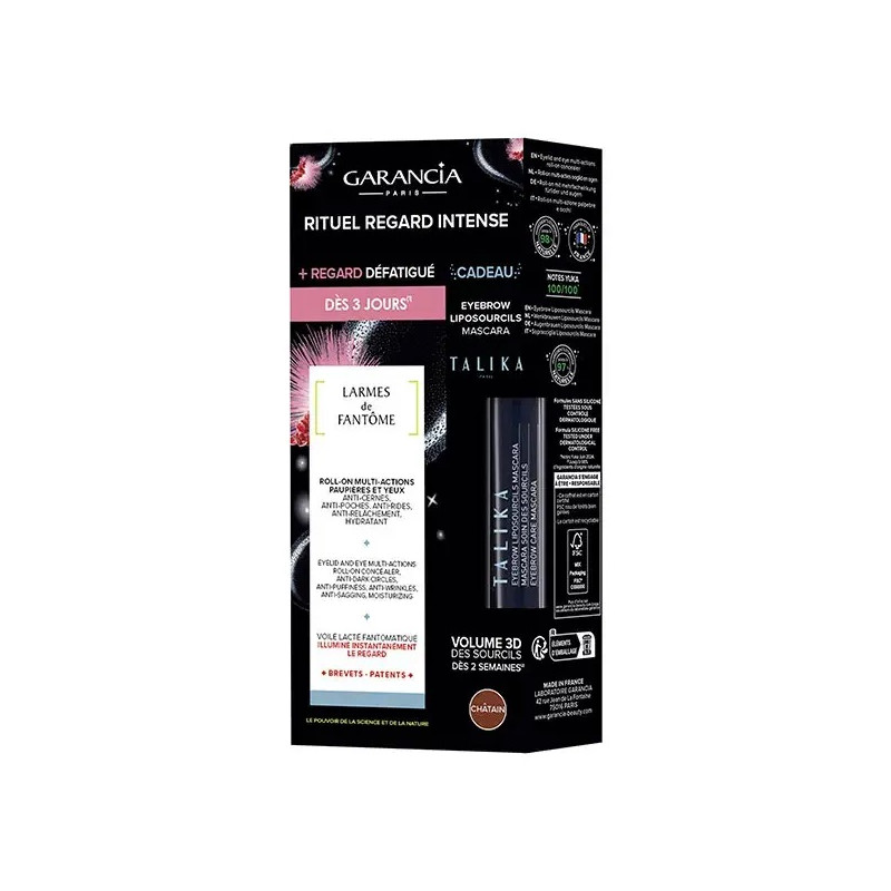 Garancia Coffret Larmes de Fantômes 10ml + Mascara Liposourcils Talika Châtain 5ml contient :