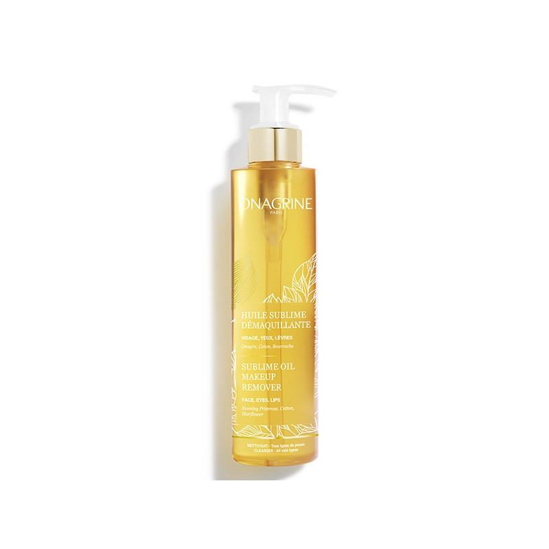 Secret de beauté inspiré des rituels de démaquillage japonais, Onagrine Huile Sublime Démaquillante 200ml sublime élimine le maquillage du visage, des yeux et des lèvres.