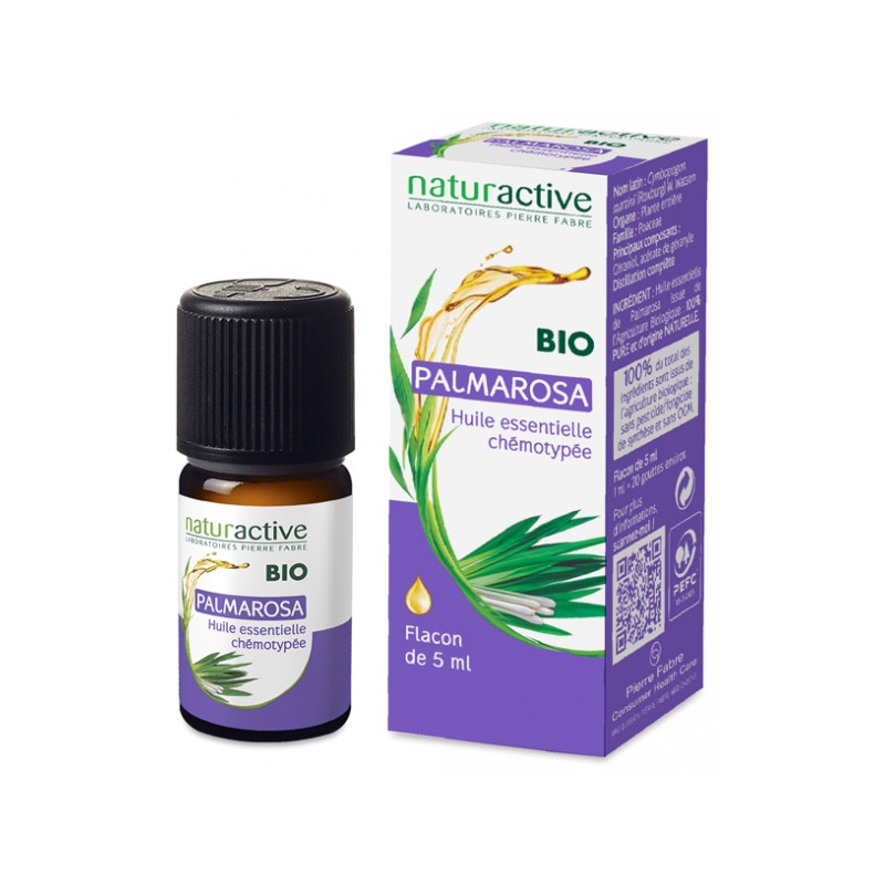 Naturactive Huile Essentielle Palmarosa (Cymbopogon martinii) Bio 5 ml est une huile essentielle chémotypée 100 % pure et d'origine naturelle.