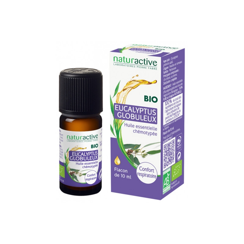 Naturactive Huile Essentielle Eucalyptus Globuleux (Eucalyptus globulus labill) Bio 10 ml est une huile essentielle chémotypée 100% pure et d'origine naturelle à l'Eucalyptus Globuleux, pour le confort respiratoire.