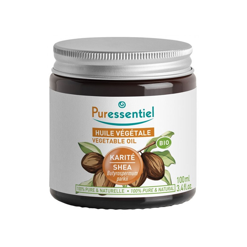 Nutritive, réparatrice et apaisante, Puressentiel Huile Végétale Beurre de Karité Bio 100ml est le soin idéal pour nourrir et réparer en profondeur la peau et les cheveux.