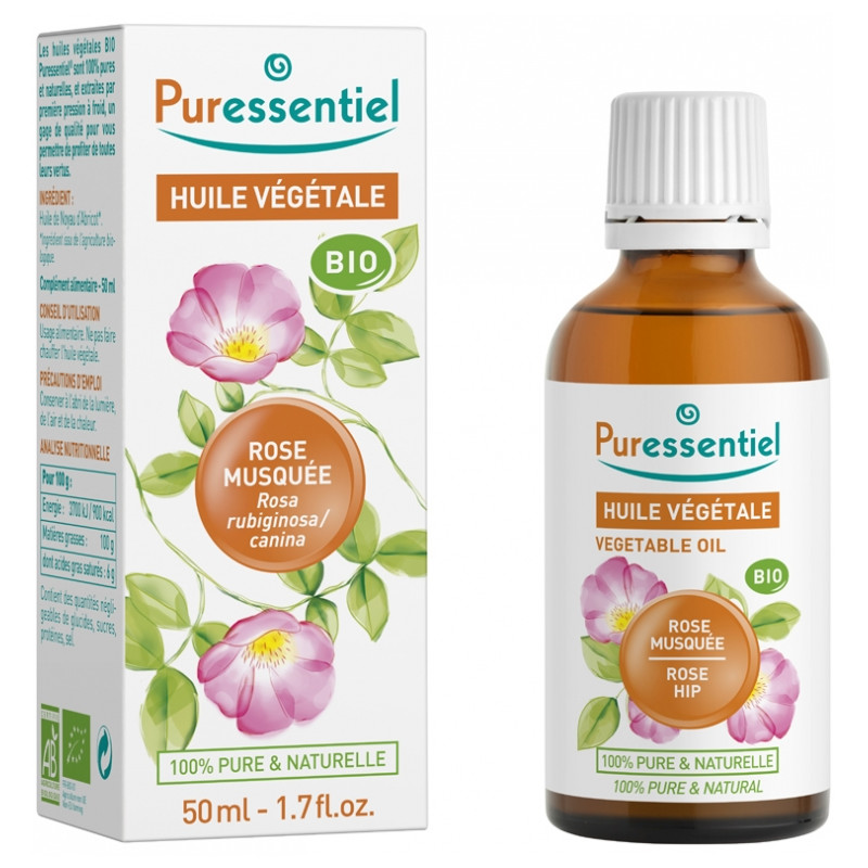 Puressentiel Huile Végétale Rose Musquée (Rosa rubiginosa/canina) Bio 50 ml est une huile végétale 100% pure et naturelle à la rose musquée bio. Elle est extraite par première pression à froid, un gage de qualité pour vous permettre de profiter de toutes ses vertus.