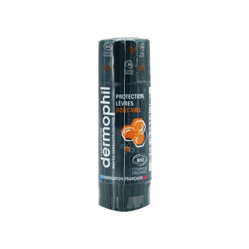 Dermophil Indien Stick Lèvres Protection Goût Miel Bio 4g convient aux lèvres les plus abîmées.