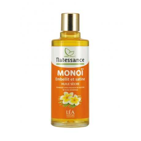 Natessance Monoï Embellit Et Satine Huile Sèche 100 ml est une huile sèche formulée avec 15% de monoï, d'huile essentielle d'Ylang-Ylang, d'huile de tournesol et d'huile de sésame.