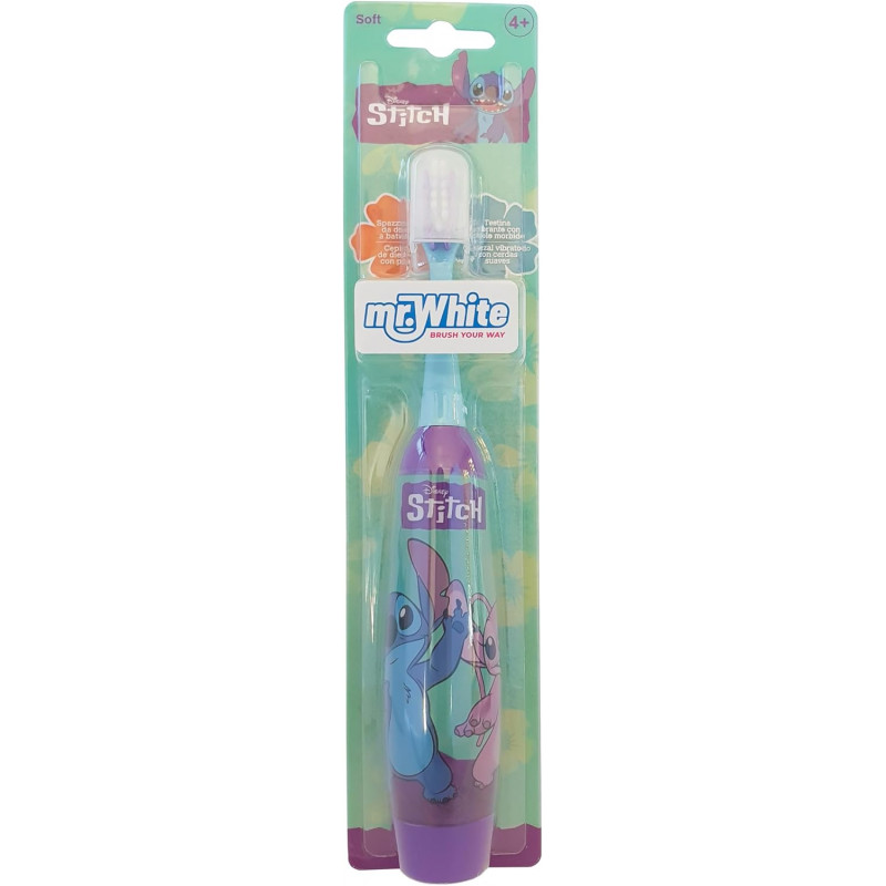 Faites du temps de brossage une partie amusante et efficace de la routine de votre enfant avec la brosse à dents électrique Disney Stitch Kids. Conçue pour les enfants âgés de 4 ans et plus, cette brosse à dents dispose de poils doux et de la technologie pulsar douce pour offrir un nettoyage plus profond et plus confortable. Avec un design Stitch vibrant et une prise en main adaptée aux enfants, c'est l'outil parfait pour aider les tout-petits à adopter des habitudes de brossage saines.