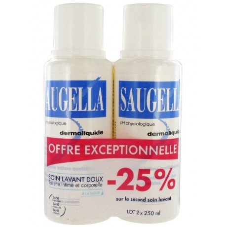 Saugella Dermoliquide Lot de 2 x 250 ml est une émulsion lavante à base d'extraits naturels qui apporte fraîcheur et bien-être lors de la toilette intime.