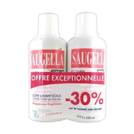 Saugella Poligyn Lot de 2 x 500 ml au pH neutre est un nettoyant doux sans savon idéal lors de la ménopause, quand les muqueuses sont particulièrement sensibles et le pH vaginal physiologiquement plus élevé. Sa formule associe des extraits naturels de camomille et de thym qui permettent une hygiène intime douce. Rafraîchissant et adoucissant, ce soin de toilette intime apaise les irritations même associées à un prurit vulvaire. Sans paraben, savon, phtalate.
