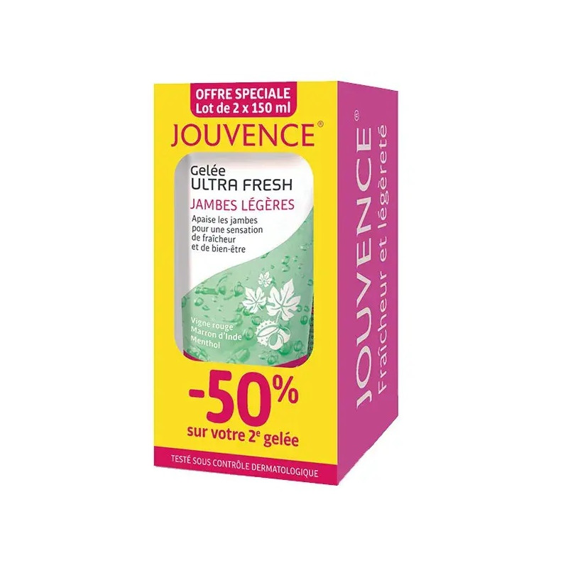 JOUVENCE Gelée Ultra Fresh à base d'extrait de Vigne rouge, Marron d'inde et de menthol procure une sensation de fraicheur instatanée et soulage les jambes en offrant une double sensation de bien -être et de légéreté
