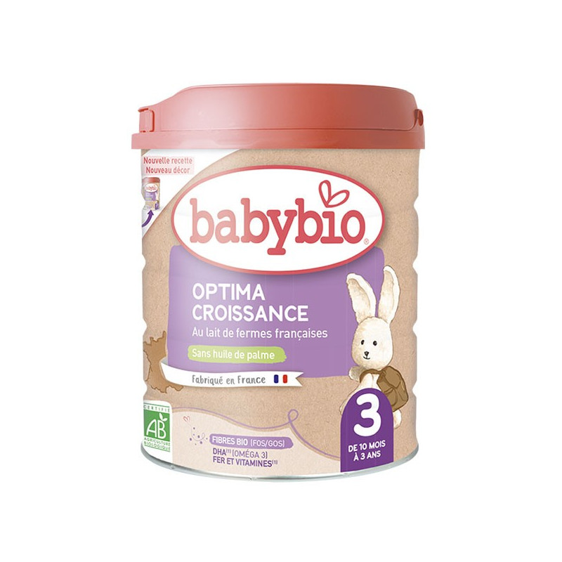 Le lait en poudre Optima 3 Croissance de BABYBIO a été conçu pour les bébés âgés de 10 mois à 3 ans.