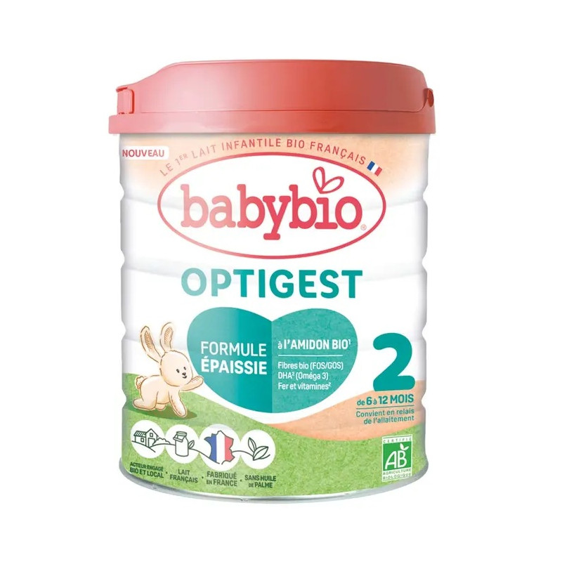 Découvrez Optigest 2, la formule épaissie à l’amidon bio pour répondre aux besoins spécifiques des bébés de 6 à 12 mois (conformément à la règlementation des laits de suite).